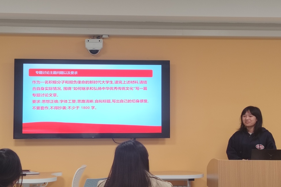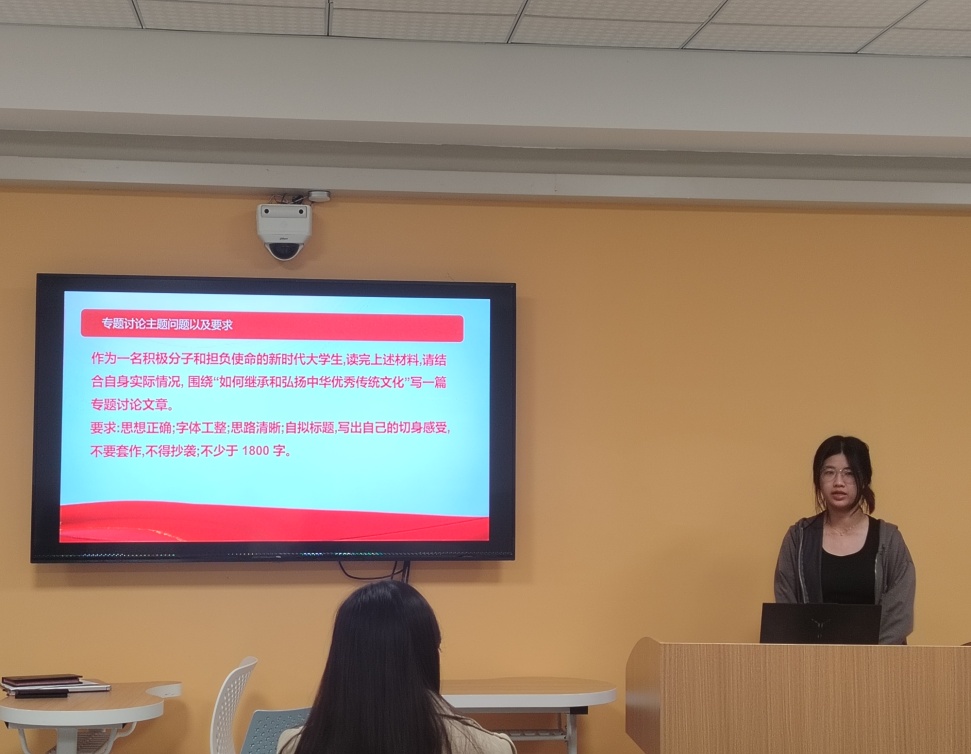 2023年11月21日晚18:00,国际学院在第四教学楼210教室召开了第5期入党积极分子“继承和弘扬中华优秀传统文化”专题培训研讨会,研讨会由辅导员老师黄晓辉主持,第五期党校培训班学员参加。