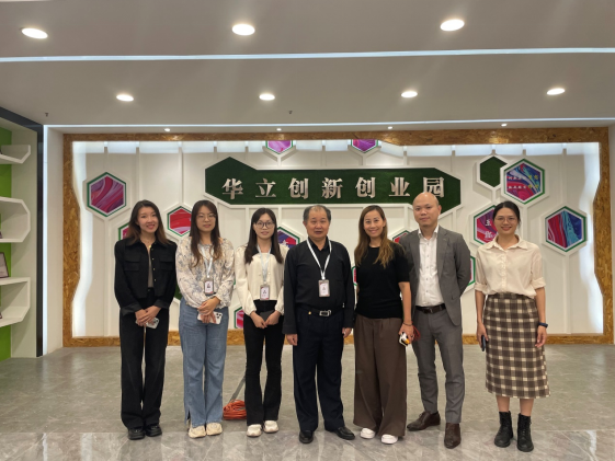 展会结束后,杨伟彬经理和张苑盈经理受邀参观广州华立学院创新创业园。广州华立学院国际学院院长唐书泽教授和外事秘书徐溦老师陪同参观。广州华立学院创新创业园入驻了近百家学生创业团队,是广州市创新创业(孵化)示范基地、产教融合基地、广州市增城区高层次人才创新创业基地。内含数间直播间、会议室,数十间办公室,是大学生创新创业团队最方便廉价优惠办公场所。