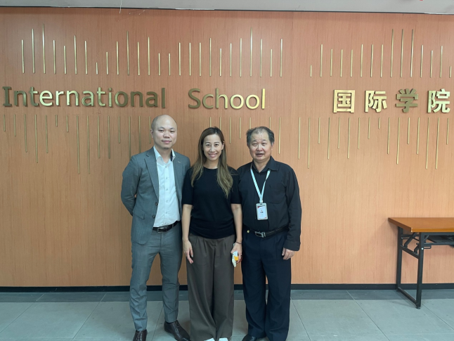 图4.林伟彬张苑盈参访国际学院,与唐院长合影