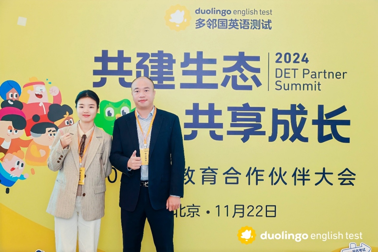 2024年11月22日,多邻国英语测试教育合作伙伴大会在北京成功举行。大会以“共建生态,共享成长”为主题。广州华立学院国际学院直属党支部书记、院长助理、硕士生导师麦文桢博士和教科办韩玉颖老师受邀代表学院参会。