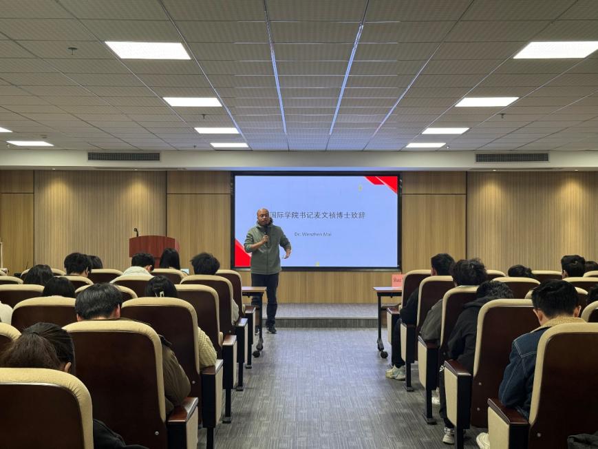 2024年12月18日, 国际学院在4-205学术报告厅举行考风考纪动员大会。会议旨在加强学生对考试纪律的认识,弘扬诚信考试的精神,确保期末考试的公平公正。院长唐书泽教授,直属党支部书记见院长助理麦文桢博士,班主任老师以及教师代表和国际学院2024级全体同学、其他班级级学生班代表共同出席会议。院长唐书泽教授作动员讲话,学生工作办公室负责人杜逸男老师主持会议。