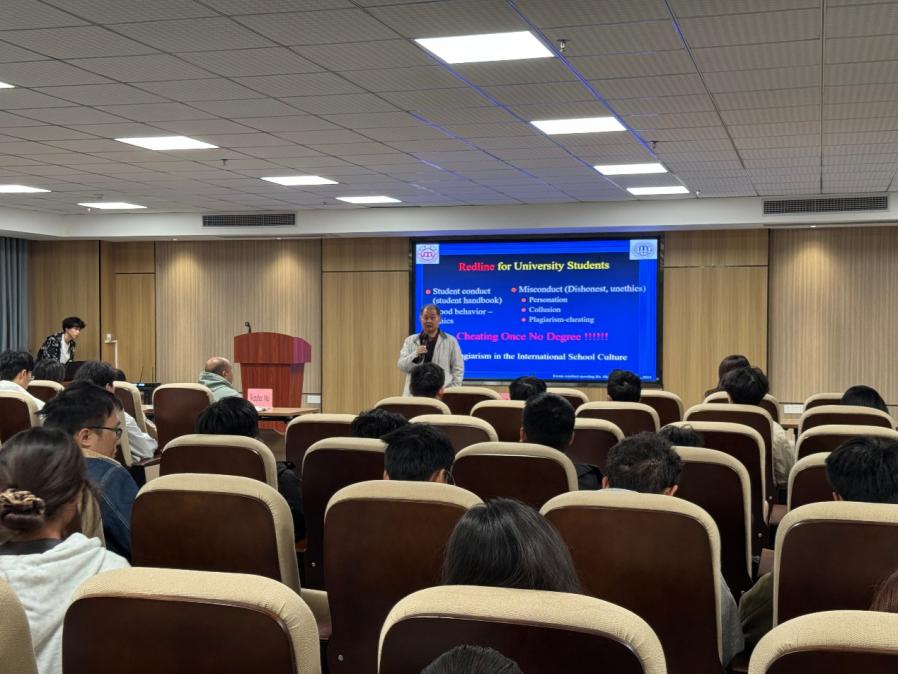 唐书泽院长强调了诚信考试的重要性。他指出,考试不仅是对学生学业成果的检验,更是对学生道德品质的考验。唐院长呼吁同学们在考试中奉守诚实原则,自觉约束自己的言行,严格遵守考试纪律,做到自警自律、自尊自爱,互相监督,弘扬正气。他表示,在世界任何一所高校,考试作弊都属于Redline,决不允许跨越,一旦跨越,终身“戴罪”。这种行为在国际学院更是红线,不容逾越。