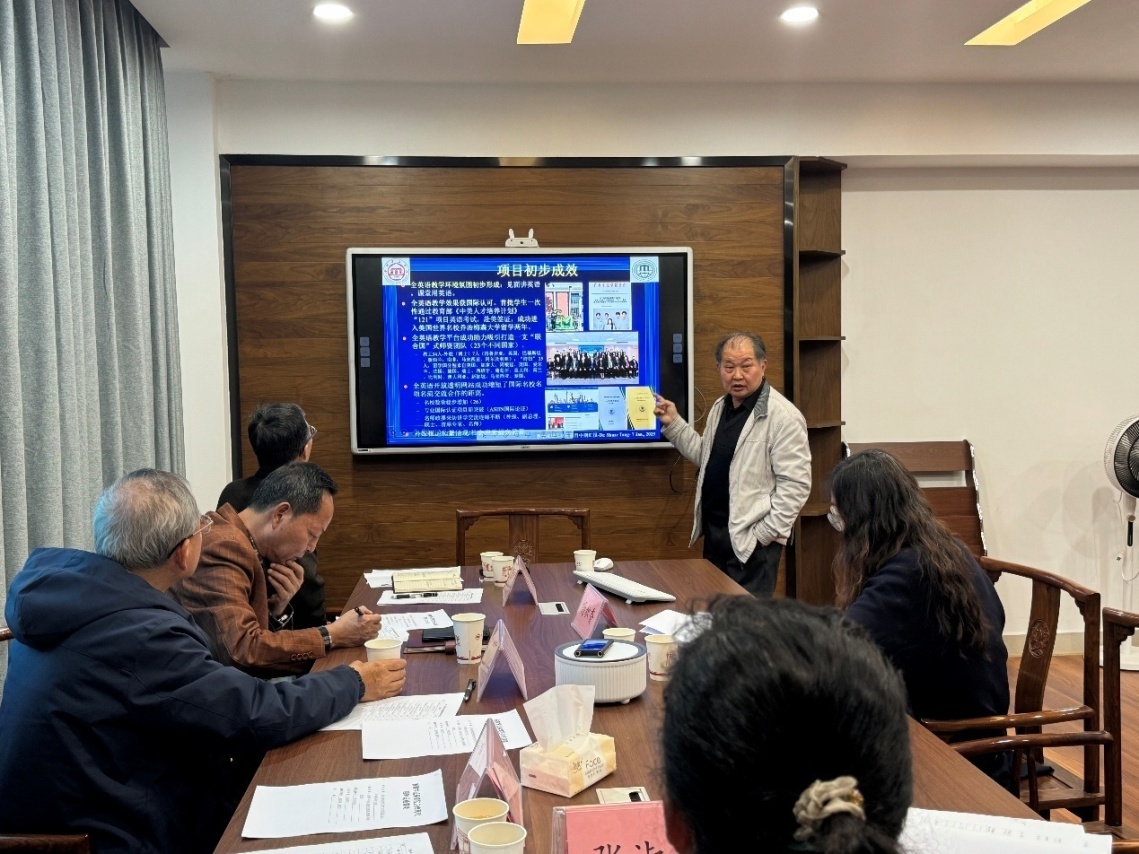 唐书泽教授报告说,项目已初见成效。国际学院已初步形成“见面讲英语,课堂用英语”的全英语教学环境氛围。国际学院的全英语教学效果获国际认可。首批学生一次性通过教育部《中美人才培养计划》“121”项目英语考试,赴美签证,成功进入美国世界名校乔治梅森大学留学两年。国际学院的全英语教学平台助力吸引打造一支“联合国”式师资团队(23个不同国家)。教工34人-外教(博士)7人(格鲁吉亚,英国,巴基斯坦,新西兰,南非,马来西亚,阿尔及利亚);“海归” 25人,留学国分别来自美国、加拿大、阿根廷、英国、爱尔兰、法国、德国、瑞士、西班牙、葡萄牙、意大利、荷兰、比利时、澳大利亚、新加坡、马来西亚、泰国。