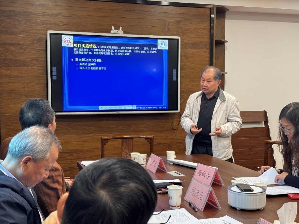 2025年1月8日,国际学院院长唐书泽教授代表国际学院在学校接待室向与会评审专家汇报了国际学院承担的2025年省教学成果奖校内培育项目中期成果。参与评审的领导和专家评委由校长刘洁生教授,副校长黄秋文教授,教务处张淑丽处长,商学院院长郑少智教授,城建学院院长寇广孝教授,外国语学院杨秋香教授,马克思主义学院王和强教授等组成。评审会由刘洁生校长主持。