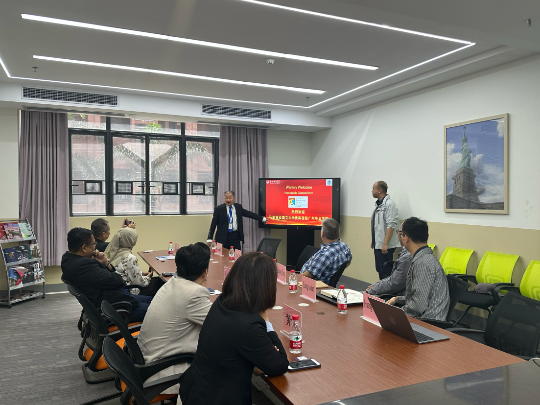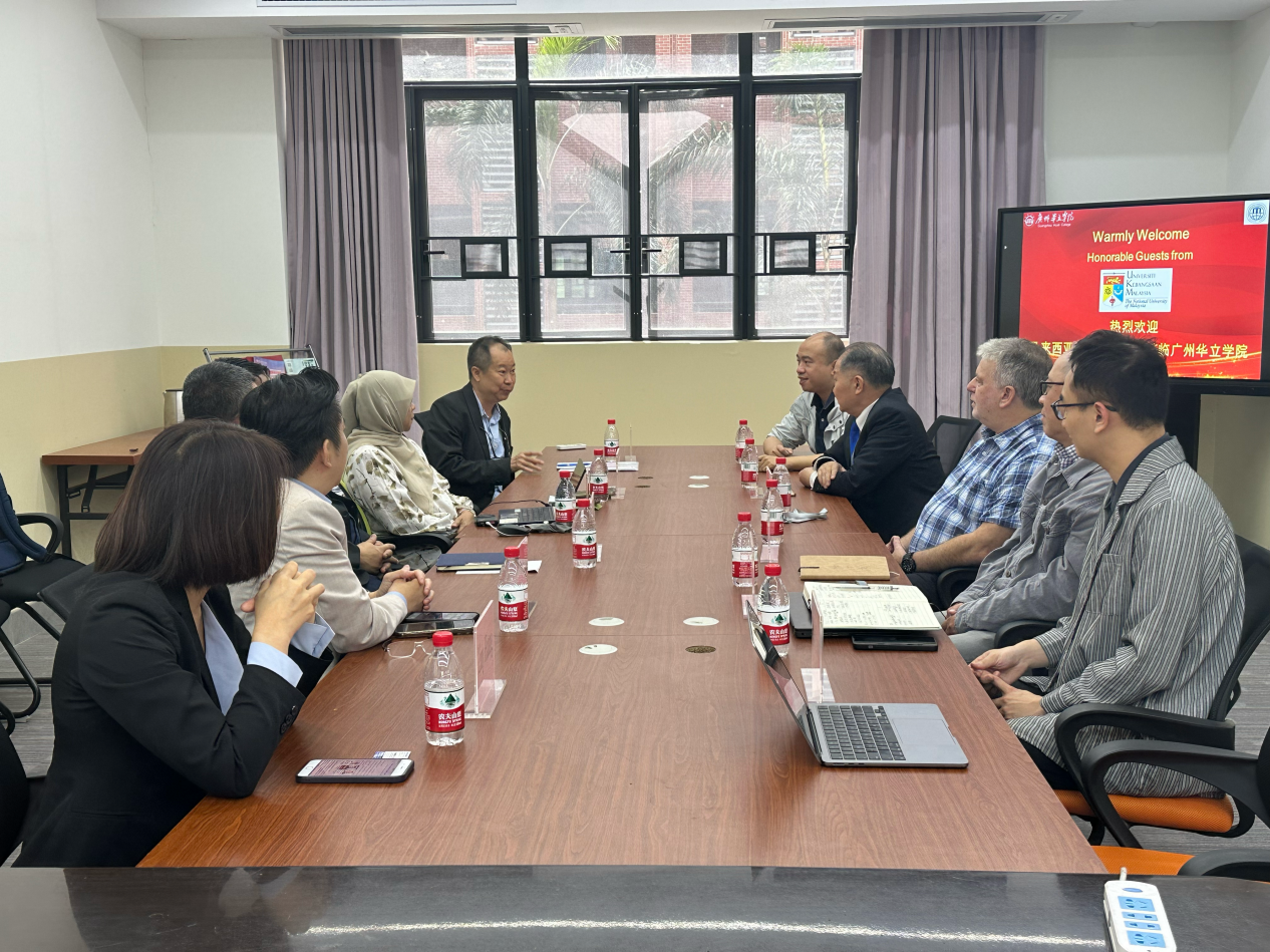 2025年4月14日,马来西亚国立大学(The National University of Malaysia,UKM)信息研究院(Institute of Visual Informatics, IVI)院长Rabiah Abdul Kadir博士,副院长Mohammad Nazir Ahmad博士和IVI研究院产业孵化基地主任Riza Sulaiman博士到访广州华立学院国际学院。陪同到访的还有中-马 “一带一路”研究院拿督Guo Tai Liu(刘国泰)博士、Edmund Koh Chuang Hui (许聪辉)博士、黄欣老师。