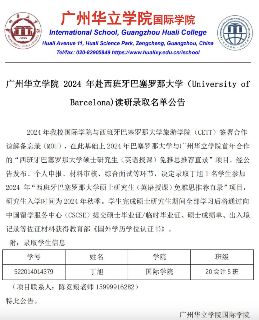 丁旭-巴塞罗那大学录取公告https://www.hualixy.edu.cn/gjxy/xygk/gw/content_67268