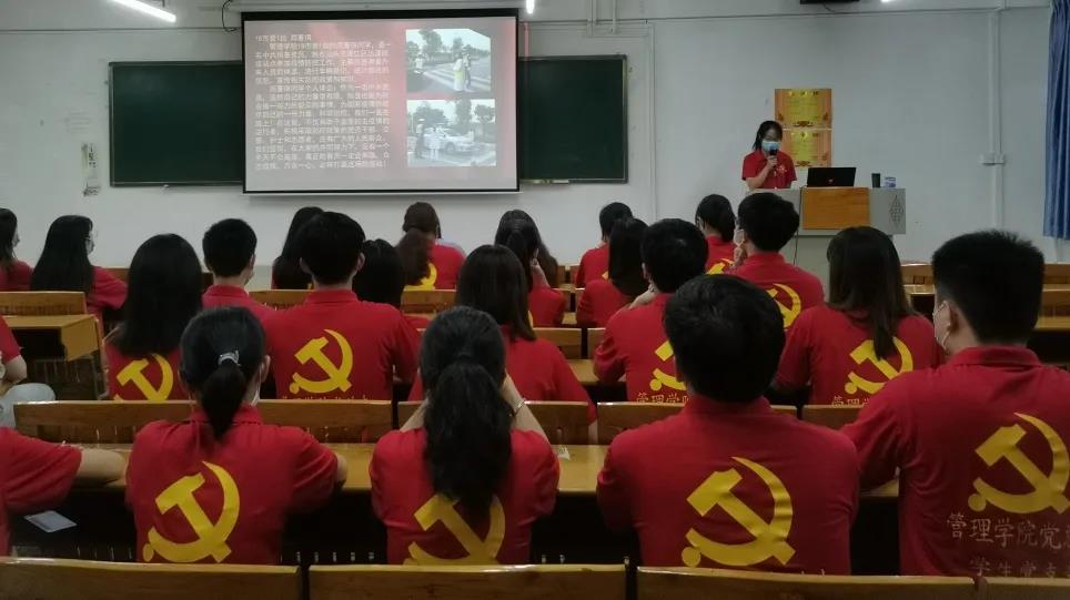 最后,由管理学院学生党支部书记朱小雯同志发言。她强调各位党员同志要认真学习习总书记在全国抗击新冠肺炎疫情表彰大会上的重要讲话精神,用优秀党员的标准严格要求自己,积极发挥党员的先锋模范作用。