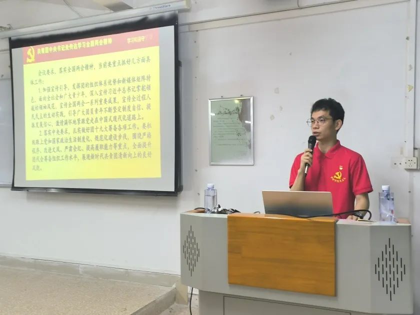 随后,授课党员组织学员们观看两会相关视频。通过观看视频,学员们对两会精神有了更加深刻的了解与认识。希望学员们能朝着学习目标,坚定理想信念,以昂扬的精神风貌,担当起新时代新青年的使命。