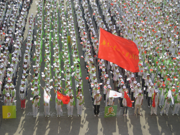 我院共有1260名志愿者代表参加了本次誓师大会。会上首先由我院亚运志愿者代表李森林同学带领全场2000多名志愿者代表宣誓,全体志愿者整齐响亮、铿锵有力地作出志愿服务、微笑奉献亚运的庄严承诺,坚信在誓词的催动下他们会以更好的状态为亚运会的成功举办奉献青春和汗水。随后陈伟副书记、叶雅明总经理、黄敬东副总经理为华立园三所院校志愿者代表队授旗。接着领导、嘉宾为我院20名亚运志愿者代表佩戴了志愿者绶带。