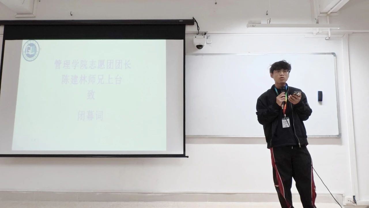 颁奖结束后,由志愿团团长陈建林师兄对比赛进行致闭幕词,对手语比赛完美结束表示祝贺。
