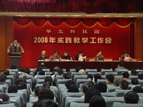 3月6日上午,华立科技园在广东工业大学华立学院图书馆1号报告厅隆重召开2008年实践教学工作大会,广东工业大学华立学院、广州华立科技职业学院、广东省华立高级技工学校、华立投资有限公司和领美集团公司五个单位的副科级以上教职工济济一堂,围绕“实践教学工作”进行交流,会议由叶雅明副总经理主持。