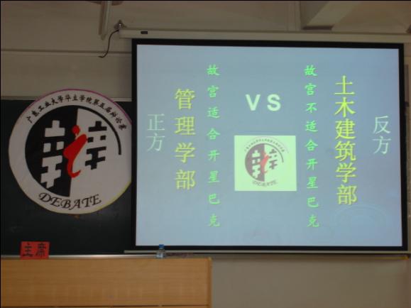 该场由我院管理学部(正方)和土木建筑学部(反方)在比赛中脱颖而出,进入了半决赛。本次半决赛的辩题是“故宫是否适合开星巴克”。