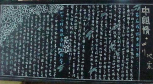 在管理学部学生会文娱部部长张闽带头下,大家深情地唱起了国歌——义勇军进行曲,每个人都深深地感觉到自己就与四川人民同在,心心相连,我们是一体的。
