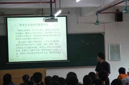 该次讲座首先引用了阿诺舒华辛力加和王宝强两位明显对人生职业生涯的正确规划,与李煜等人的反面例子对比说明规划职业生涯的重要性,提出要规划好自己的职业生涯首先自己要“四定”即定向、定点、定位、定心。讲述了职业生涯设计所保护的几个内容:自我评估、组织与社会环境分析、生涯机会的评估、职业生涯目标的确定、制定行动方案和评价与反馈。