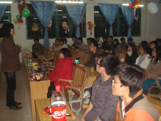 2008年12月23日晚上7点,管理学部06市场营销1班在五号楼203教室举行了一场以“我们的故事”为主题的生动活泼的班会。我们邀请了刘慧书记、班主任王磊老师和辅导员魏冠东老师作为嘉宾出席了班会,与我们共同分享两年多来的幸福时光。