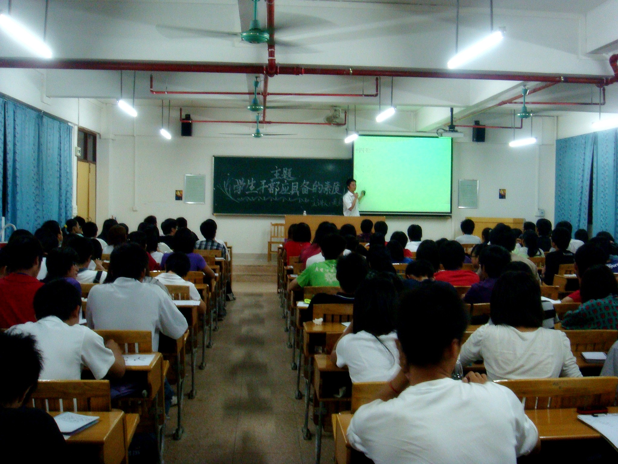 2009年10月29日下午5点25分本届干部培训第二期在5号教学楼302室举行。出席本期培训课的嘉宾有:建筑学部书记黄叔贤;主席团的六位干部;管理学部学生会的全体成员及各班代表。