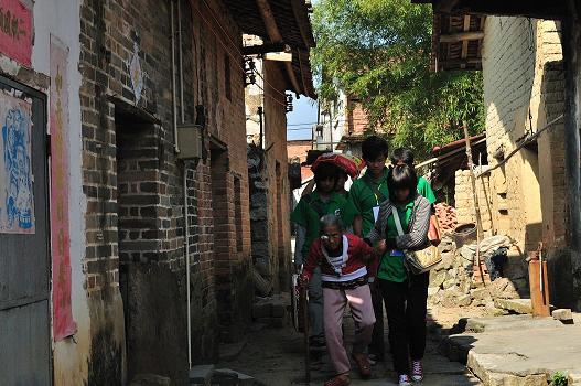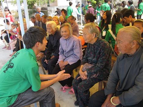 队伍于早上8:45到达了正果镇池田村,首先映入我们眼帘的是一片僻静与荒凉。同学们安置妥当后,分组跟村里的孤寡老人谈话聊天,倾听老人述说那光荣和心酸的历史。同时邀请他们观看同学们精心准备的节目。一个个精彩纷呈的节目,让老人们露出了开心的笑容。中午,同学们跟当地村长和爷爷奶奶们共进午餐。饭桌上,大家纷纷为老人盛饭夹菜,其乐融融。饭后,同学们给当地贫困户送去了一些生活慰问品。村长被同学们的行为深深打动,对大家的爱心付出也深表感激,并赠送志愿者们一幅锦旗与同学们合影留念。