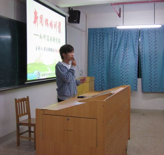 培训课上,主讲人详细地给干事们讲解新闻稿的必备知识,同时在叙述过程中也加入一些个人经验之谈再次点纲,加深听众印象,为整个主题提升一个高度。