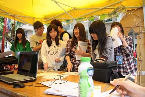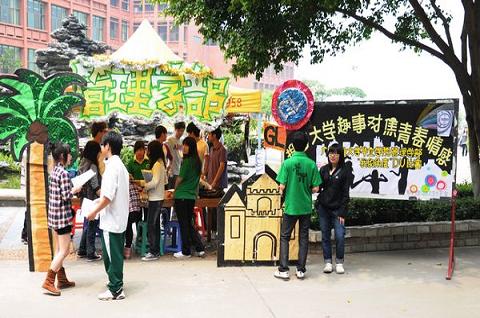 在摆摊的过程中,现场有不少心怀浓厚兴趣同学成群结队地前来摊位进行活动咨询,工作人员更是热情介绍活动,细心地解说疑问。现场的工作人员纷纷拿出十八般武艺,除了向周边同学发放宣传单之外, 还结合宣传部制作的立体宣传板在热情地吆喝着,引起周围同学的注意,使得宣传效果大大提高。更值得一提的一大亮点是:为了加强宣传效果,我们主办部门还精心录制了幽默的宣传小片,并当场用手提电脑播放。特别的宣传方式吸引了不少怀有好奇心同学的注意。很多感兴趣的同学还当场填表报名,纷纷表示很有意愿参加这次活动。