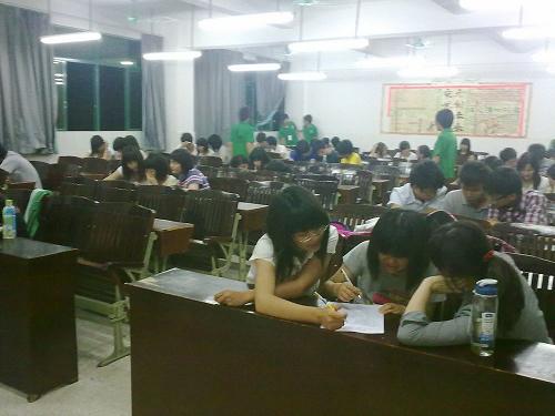 当晚,来自管理学部大一学生的共32支精英队伍汇集一号楼的503和504课室,进行“趣味生活大百科”知识竞赛的初赛,在比赛现场,同学们为完成试题,不时与自己队伍的队员进行讨论。整间考场充满了大家的讨论声,从大家的讨论声中看出大家对这次活动是抱着十分认真的态度来对待的。在经过半个小时的奋斗后,大家逐渐露出放松的表情,大部分的队伍已经完成了试题,并交出了令自己满意的答卷。