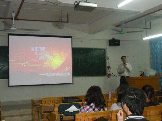 各小组的演讲交流会后、刘丽娜老师作了小结发言,余文华书记作了以“坚定信仰、忠诚于党、奉献于民”为主题的总结报告。在报告中他肯定了我们近来的工作,并以丰富的党史资料,教育我们大学生要以史为鉴、把握规律、深化学习,坚定自己的信仰,忠诚于党和人民的各项事业,全心全意为人民服务。