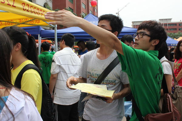 2011年9月3日,荔城依然骄阳似火,但已秋风送爽,巍巍学府正沸腾着它的热情。一个个新生的目光中绽放着对大学生活兴奋和憧憬;一位位家长的脸上洋溢着对孩子们得骄傲和期盼;一名名活跃在校园中的工作人员尽职尽责,以亲切的微笑、耐心的解释和投入的工作,感染着新生与家长,给那些远离家乡的孩子们以温暖和关怀。在迎新现场,各部门协调一致、各司其职,井然有序地开展着各项工作,构成了秋天校园最美丽的风景。