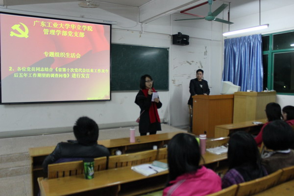 2012年3月1日晚上 6:00,管理学部党支部组织全体党员在5号楼201课室开展专题组织生活会议。出席本次会议的有管理学部全体党员同志与我部党支部书记李玉林。会议由党务秘书林晓新同志主持。