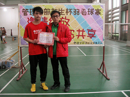 此次新生杯羽毛球的特色是男单,女单,混双三局两胜,实行淘汰制。在各班拉拉队热情的呐喊声中,各班选手们奋勇拼搏,进行了激烈的角逐,为班级体荣誉而战。激情绽放,‘‘羽’’您共享,他们用羽毛球诠释着我们的主题。12级物流1班以精湛的球技击败12级人力1班,以3:0的成绩取得压倒性的胜利,顺利摘得桂冠。12级人力1班和12级信管1班也在本次活动中取得优异的成绩,分别获得了亚军和季军。最后,管理学部团总支学生会主席黄秋城、副主席黄声培、谢鹏玲为前三甲班级进行了颁奖。