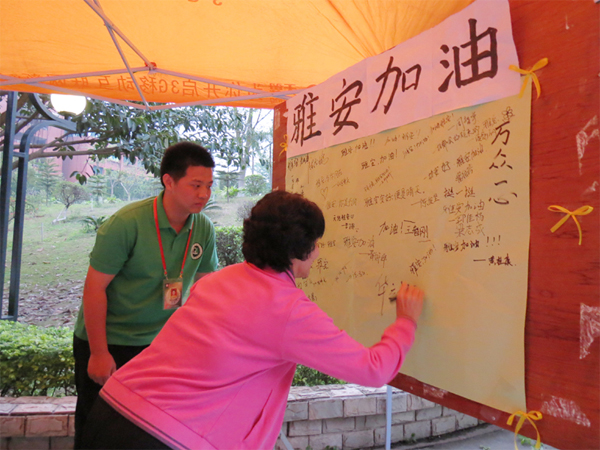 值得一提的是我们活动中的“为雅安祝福”的黄丝带行动,我们准备了