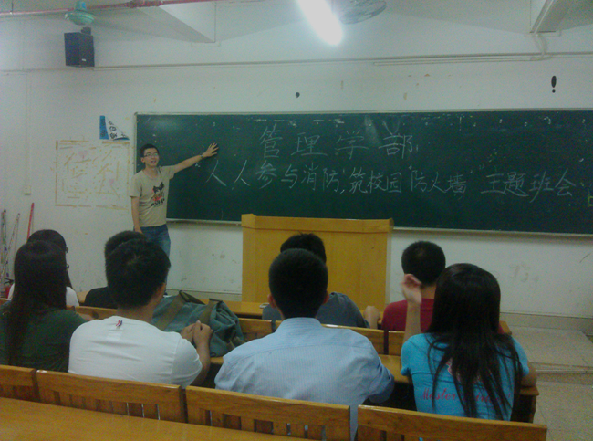 10月15日至17日,管理学部28个在校生班级分别在5号教学楼各教室召开“人人参与消防,筑校园‘防火墙’