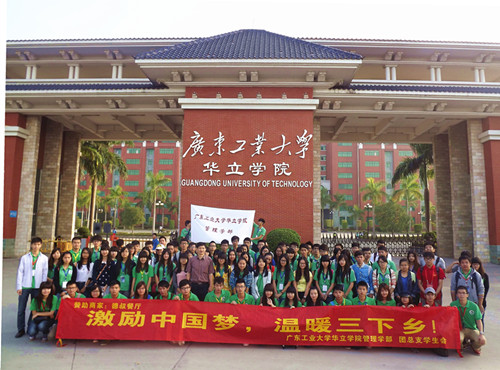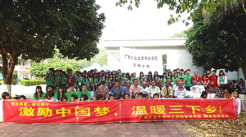 2013年11月9日和10日早上9点。广东工业大学华立学院管理学部在增城市小楼镇竹坑村、增城市正果镇水围村和银场村举办以“激励中国梦,温暖三下乡”为主题的爱心扶贫活动。此次三下乡活动以管理学部团总支学生会为主办单位,管理学部党总支为协办单位。参加此处三下乡实践活动的有团总支全体成员、党总支部分党员、其他学部的志愿者代表以及学院各组织代表共229人,活动由学部团总支书记胡德森和党建指导老师李作芳带队。
