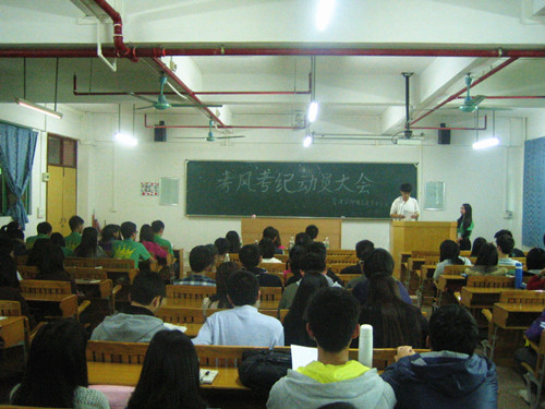 在一年一度的期末考以及全国大学英语四六级考试即将到来之际,为了进一步加强考风考纪建设,营造良好和严肃的考试氛围,构建诚信校园并且保证期末考试、全国大学英语四六级考试的顺利进行。2013年12月10日下午,管理学部在5号楼302教室召开考风考纪动员大会。出席本次动员大会的有管理学部党总支书记李炽平、12级辅导员张雪玉老师、各班代表以及管理学部团总支学生会干部。会议由团总支学生会纪检部负责。