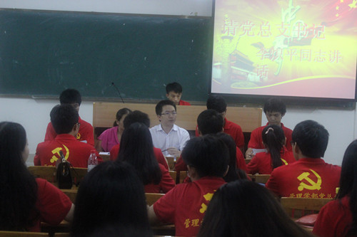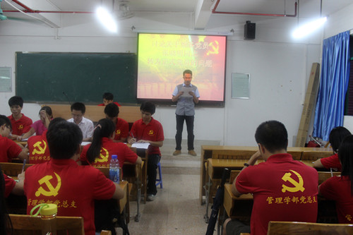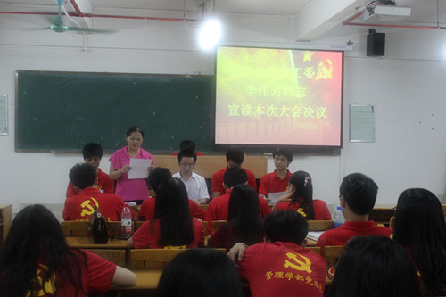 然后,由管理学部党总支组织委员岑钰骅同志汇报上学期本学部党员的学习情况,鼓励党员同志在学习上更努力,更认真,起到党员先锋模范作用。在会议上,纪律委员李洋同志宣读党总支的纪律规章制度,要求党员同志严格遵守。