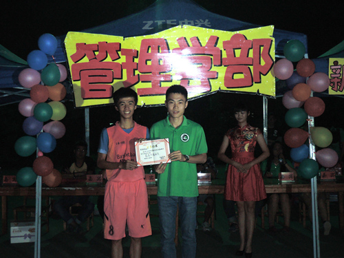 经过5天的小组积分赛和淘汰赛,14人力1班和14工商1班脱颖而出,于10月15日下午7,8节课后展开争夺冠军之战,最终14人力1班以6分的优势荣获冠军。14人力1班的黄乾锐同学荣获最有价值球员的称号。14工商1班荣获亚军,14工商2班荣获季军,14市营1班荣获道德风尚奖。