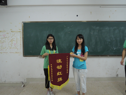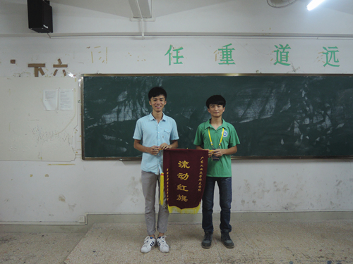 2015年5月7日晚修期间,管理学部团总支学生会进行了本学期第四次流动红旗的颁发。14物流1班、14人力1班分别获得本次流动红旗评比的第一名和第二名。