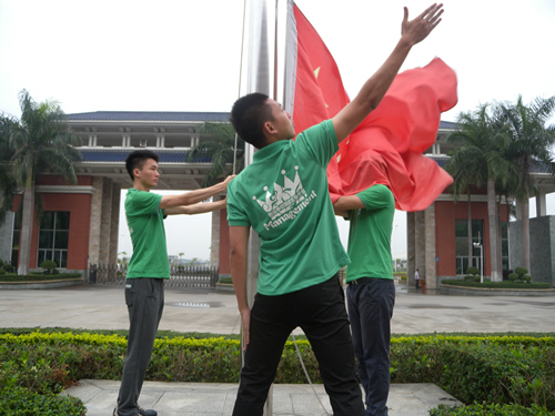 2015年5月4日早上7时,管理学部2014级全体同学在综合楼广场举行隆重而简短的升旗仪式。