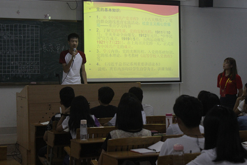 在党章学习的过程中,授课人员首先给学员讲解了入党的流程、入党的条件以及入党申请书的格式等知识。通过授课人员的认真讲解,同学们对党的知识有了进一步的了解,也提高了入党的积极性。同时,授课党员还结合了日常生活的实际例子向学员们讲解了社会主义核心价值观的内容知识,并引导学员们树立正确的人生观和价值观,学员们也积极和授课人员互动,交流。