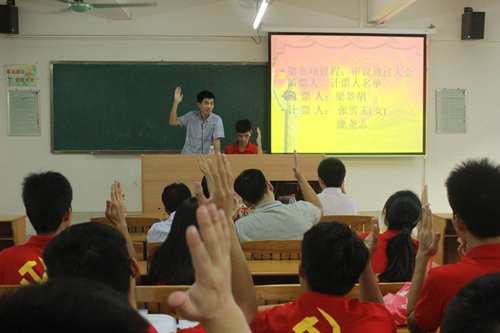 按筹备工作计划,大会主持人邱书记分别介绍了管理学部总支部委员会的委员候选人。大会通过民主无记名的投票方式,采取了等额选举办法对刘伟同志、邱四峰同志、李季霞同志、李作芳同志以及李炽平同志等5名委员候选人进行了选举。最后,监票人梁景胡同志公布了投票结果,5名委员候选人如期当选。