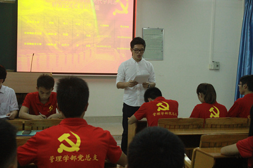 会议伊始,管理学部党总支书记李炽平同志宣读了《管理学部党总支党员干部调整文件》,通过他的阐述,我们知道了新一任党总支委员分工明确,各司其职,这进一步完善了党总支的组织架构,加强了党建工作的规范性,推动了学院相关决定的贯彻执行,有利于日后党建工作的高效率开展。
