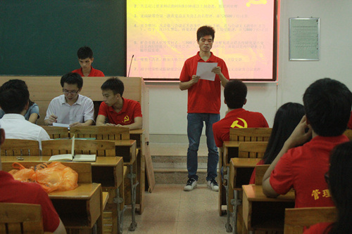 接着,市营物流党支部副书记庞尧志同志汇报了上学期管理学部党总支党员的学习情况。从中我们可以知道,大多数党员同志学习成绩较优秀,部分党员同志还考取了大学英语四、六级证书,充分发挥了先锋模范的引领作用。为了更加规范党员同志的行为举止,提高党员同志的综合素质,工商人力党支部副书记卢境志同志还宣读了党总支纪律规章制度,希望党员同志以身作则,严守党组织纪律。