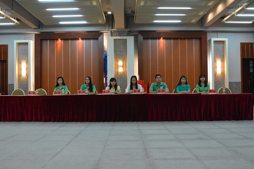 主席团的各位成员也轮流上台进行了自我介绍,希望学生会的各成员在工作中要有激情和责任心。在团总支学生会各部门轮流上台进行自我介绍和游戏的环节,大会现场气氛踊跃、激昂高涨。