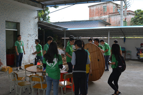 迎着初升的朝阳,14日早上七点半,管理学部团总支学生会成员与各学部志愿者携带全部慰问物资在本科校门口集合,乘坐大巴约一个小时后到达正果镇中西村的光明小学,随后同学们为即将到来的小朋友和老人准备表演节目。在老人和小朋友们观看志愿者们准备的丰富精彩的节目后,志愿者们通过与老人的交流,了解他们的日常生活,而部分志愿者则对小朋友开展义教活动。
