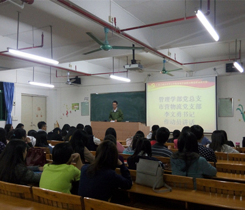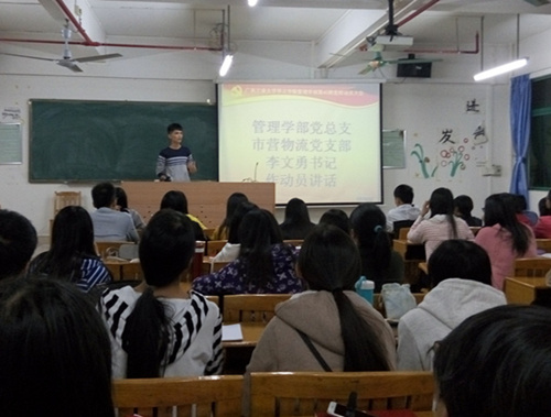 2015年11月26日19时,管理学部党总支在5号楼407教室顺利召开了第40期党校动员大会,参加此次会议的人员有管理学部党总支市营物流党支部书记李文勇同志、党务秘书及第40期党校培训班的41名入党积极分子。