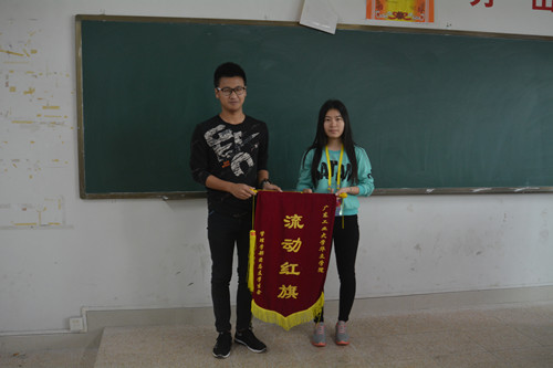 在同学们的共同努力之下,15物流1班和15市营2班在前两周考勤和卫生评比中分别获得第一名和第二名,管理学部学生会纪检部副部长谢佩婷为获得第一名的物流1班颁发流动红旗,并给予了表扬与肯定,希望他们在接下来的日子里,不骄不躁,坚持自己班的良好班风,做好带动气氛的作用;接着为获得第二名的15市营2班颁发流动红旗,并表示了热烈的祝贺,希望班里的每一位同学能够坚持不懈的继续为班集体献出自己的一份力量,期待着他们有更好的表现。