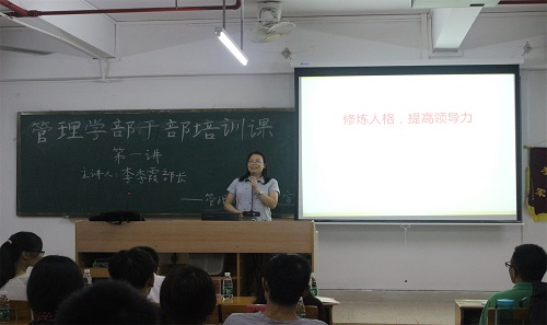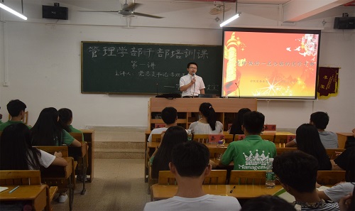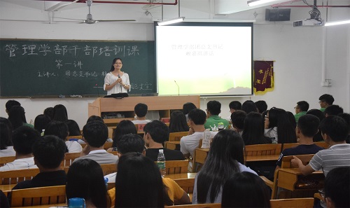 2016年9月21日19时,管理学部学生干部培训课在团总支学生会的组织下隆重召开,管理学部部长李季霞、党总支书记李炽平、团总支书记赖嘉琪出席本次培训课,对第十四届管理学部团总支学生会的全体学生干部进行培训。