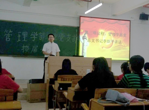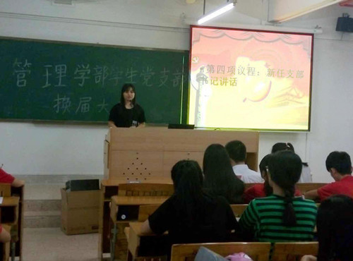 (撰稿人:崔晓敏)2016年9月20日18时,按学院党委部署,管理学部党总支学生党支部在5号楼409教室召开了支部换届大会。出席此次会议的有学部党总支书记李炽平同志、教工党员张雪玉同志、赖嘉琪同志、以及学部全体学生党员。