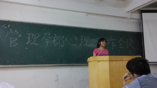 2016年10月10日,管理学部在五号楼509课室举行了“养成习惯心理”主题班会。为了提高同学们的学习效率,帮助同学们掌握良好的学习方法,更好地学习专业知识,提高学生的学习成绩。出席本次班会的有管理学部15级辅导员张雪玉和14级、15级、16级全体心理委员。
