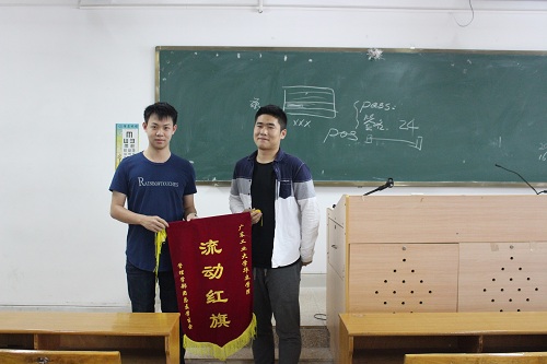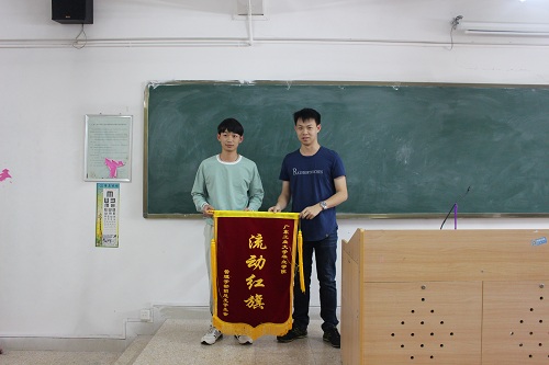早修期间,纪检部部长张瀚分别将流动红旗颁发给16物流1班和16市营1班,两位班长代表全班同学接过了象征班级荣誉的流动红旗。纪检部部长张瀚向获得流动红旗的两个班级表示祝贺,鼓励两个班的同学再接再厉,早晚修按时出勤,认真打扫课室卫生,在下次流动红旗评比中能有更好的成绩。