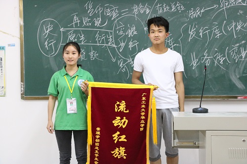 管理学部学生会生活部于2017年4月17日晚修期间进行了流动红旗的颁发,活动由生活部的两名干事主持,邀请了学生会生活部部长宋洁为获奖班级进行颁奖。