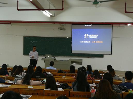 借此宣讲会的机会,让同学们了解第三方支付行业发展的前景、目前发展状况。